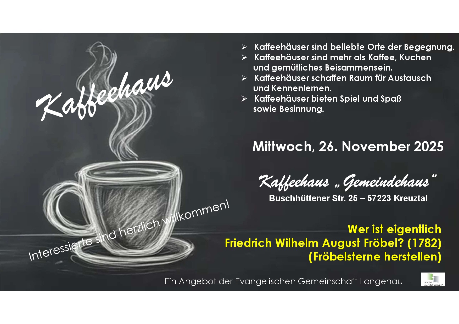 15.00 Uhr - „Kaffeehaus“ im Gemeindehaus
