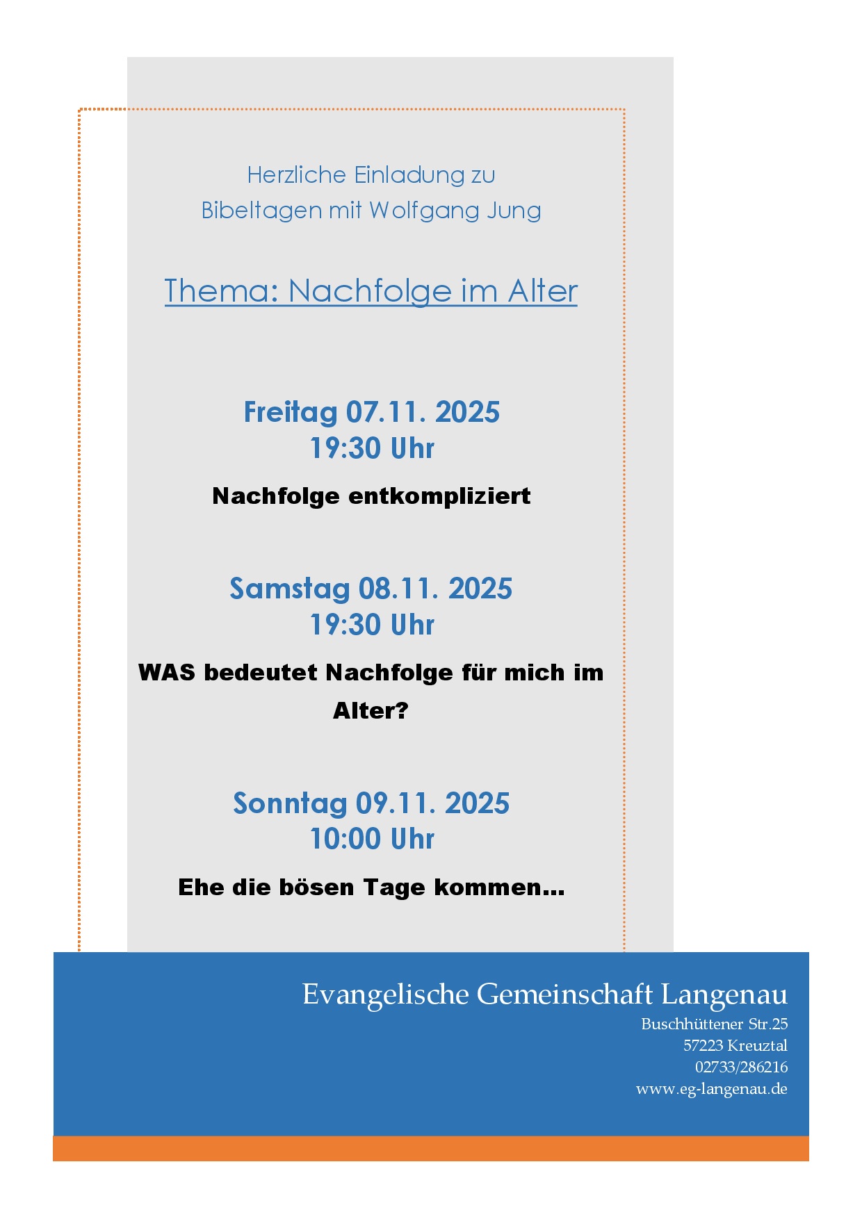 19.30 Uhr - Bibeltage mit Wolfgang Jung